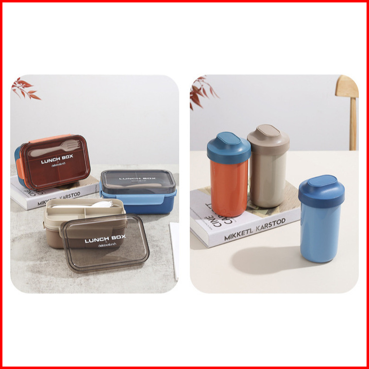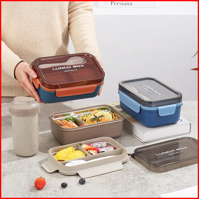 Lunch Box Set Anti Tumpah Kotak Bekal 3 Sekat Dewasa Free Botol Minum Sendok Garpu Kode T06