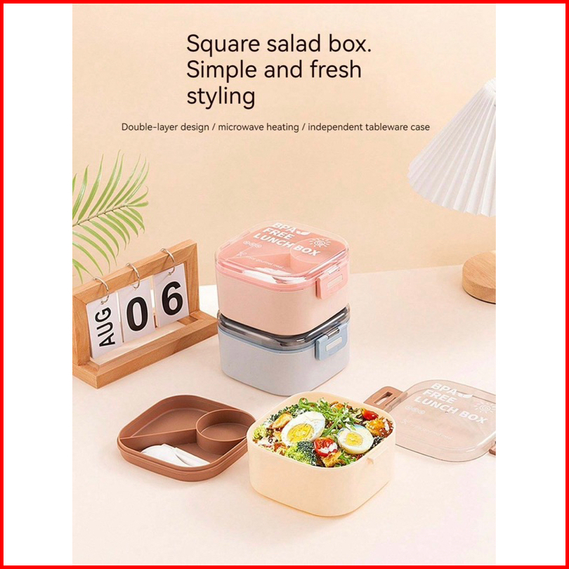 Lunch Box Susun Kotak Makan 2 Tingkat Free Alat Makan Kapasitas 1000ml 8818