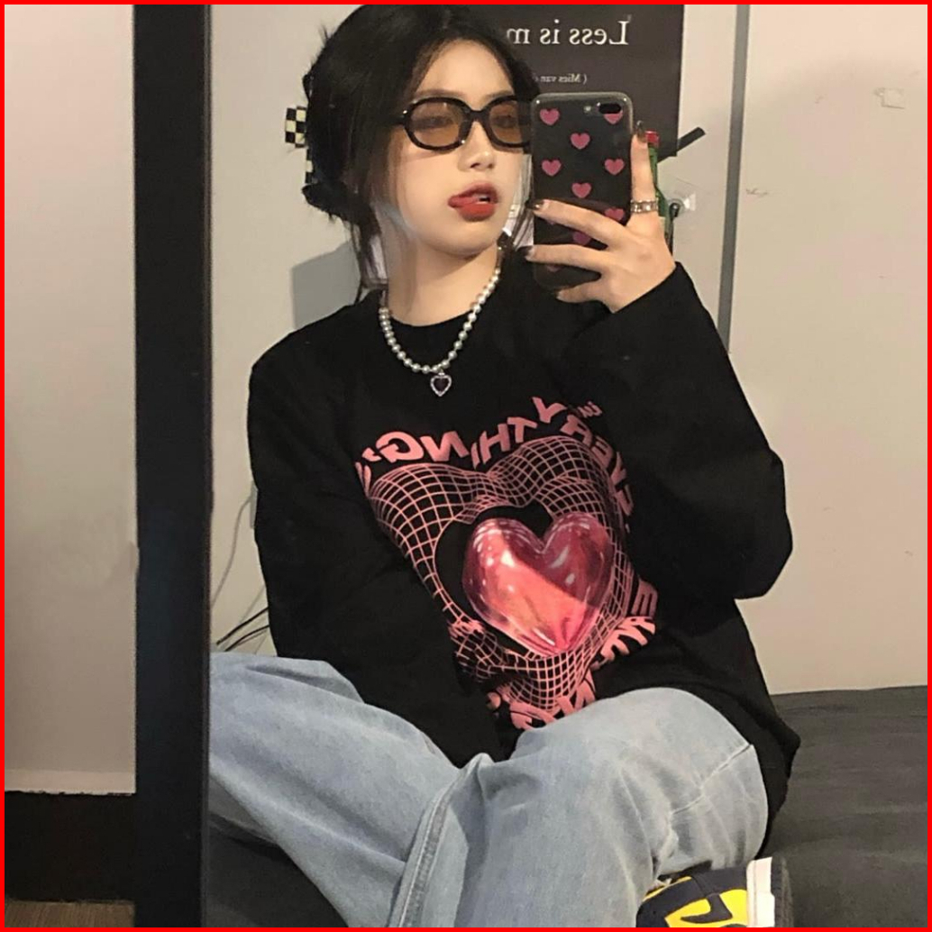 Gb05 A0112 Forteid.print Sweater Oversize Pink Heart Sweater Hitam Kaos Oversize Baggy A0112 Panjang Wanita Retro Korean