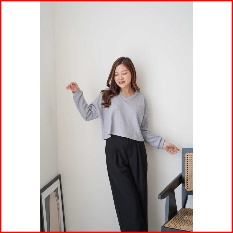 Michae Waffle Oversize Crop Top Korean Style Premium Knit