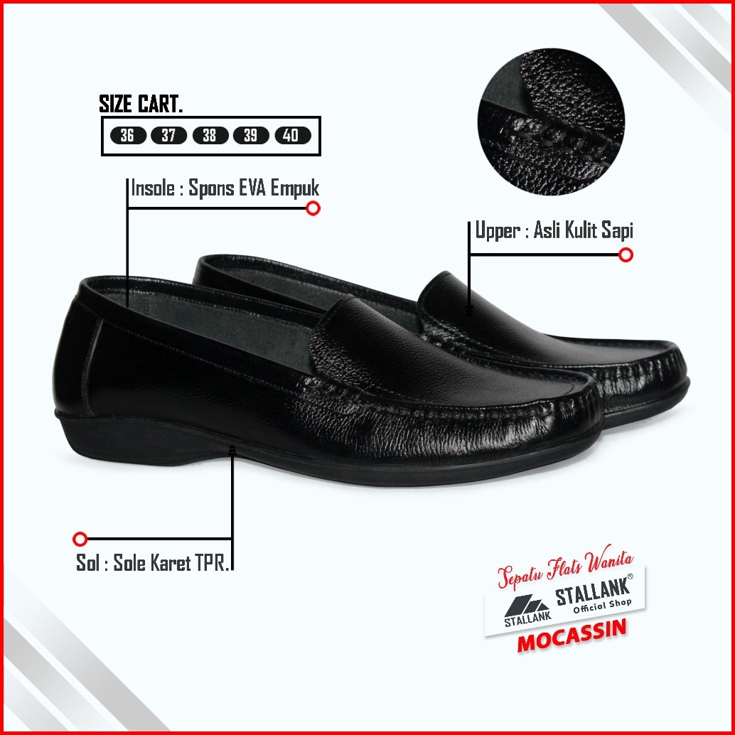 Stallank Sepatu Mocassin Wanita Flats Loafers Asli Kulit