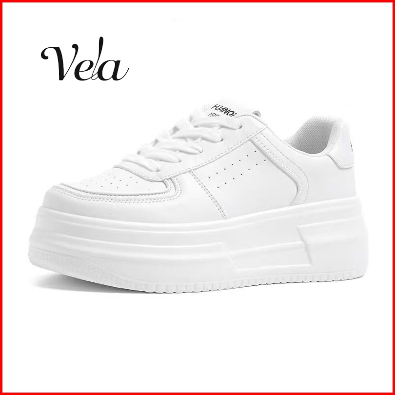 Vela Sepatu Sneakers Wanita Putih Olahraga Jogging Korean Casual Kanvas Kasual Sol Tebal Untuk