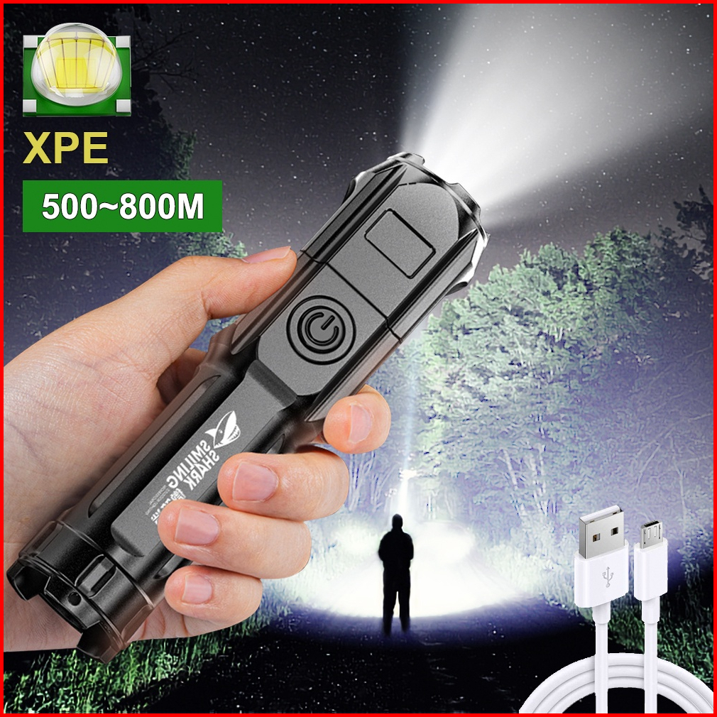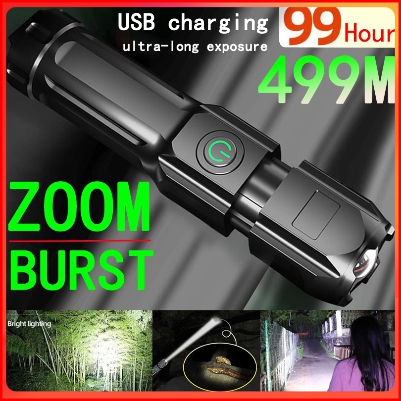 Senter Portabel Luar Ruangan Cahaya Kuat Daya Tinggi Zoom Isi Ulang Sorot Senter Taktis Pencahayaan Luar Ruangan Senter