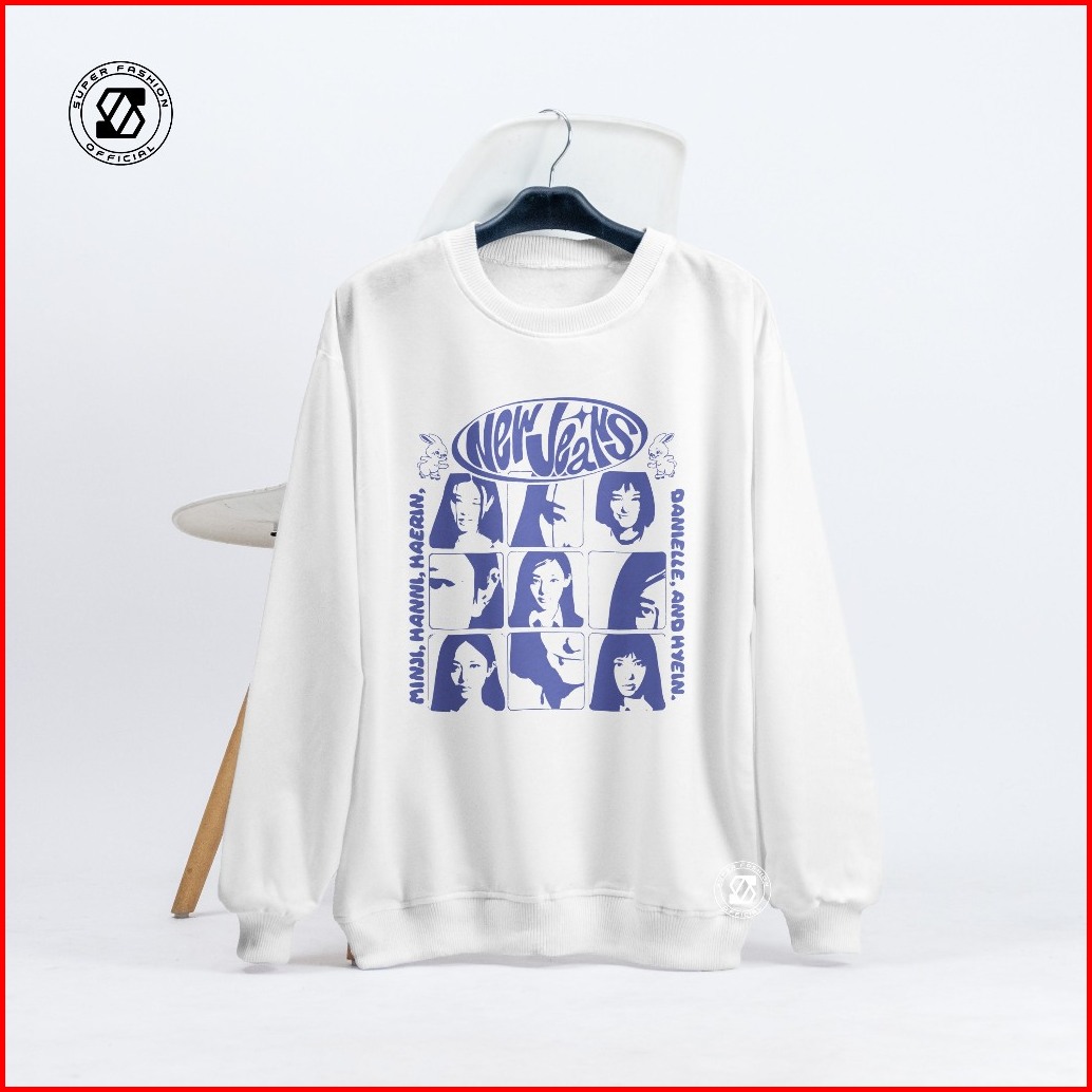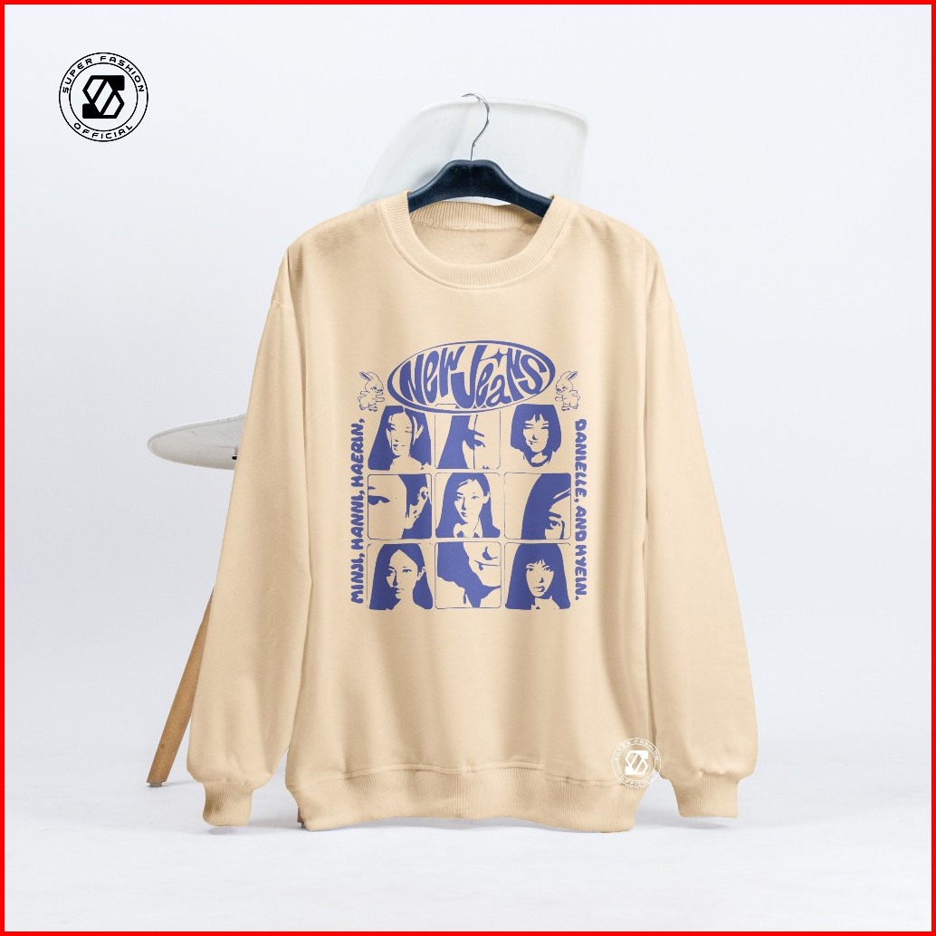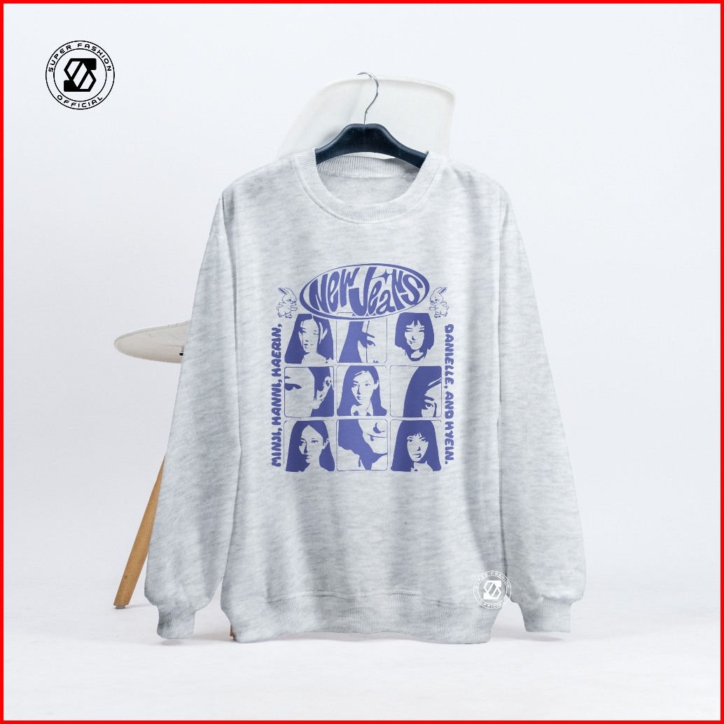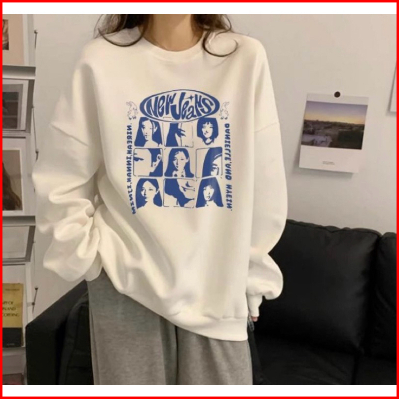 Sweater Wanita Newjeans Oversize Oblong Crewneck Remaja Korean K-pop Sweatshirt Anak Kekinian