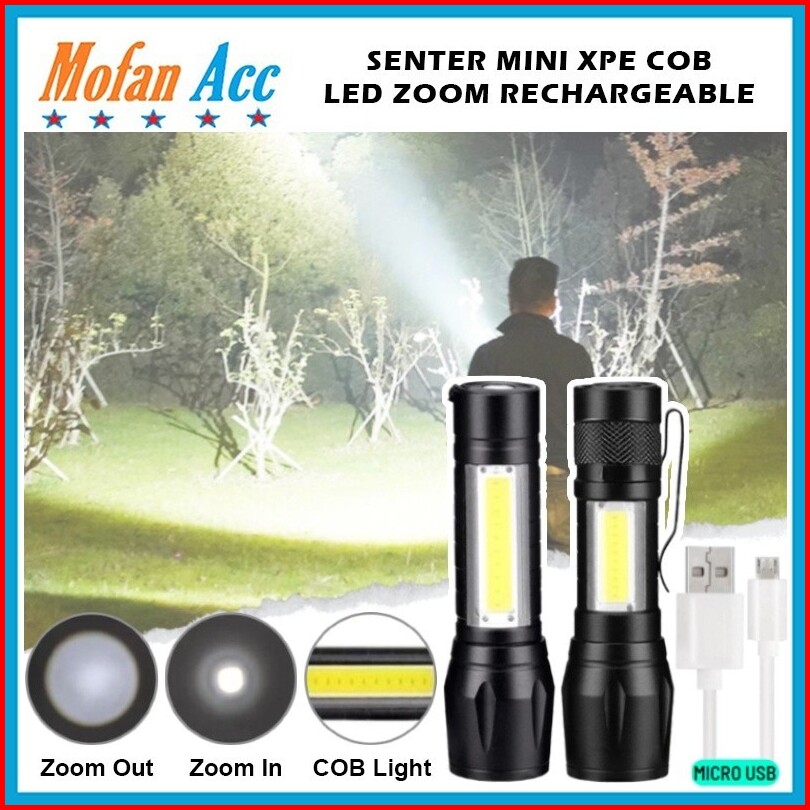 Senter Mini Dus Xpe Cob Led Zoom Super Terang Swat Police Light Rechargeable Lampu Pencahayaan Mini Camping Piknik Hikin