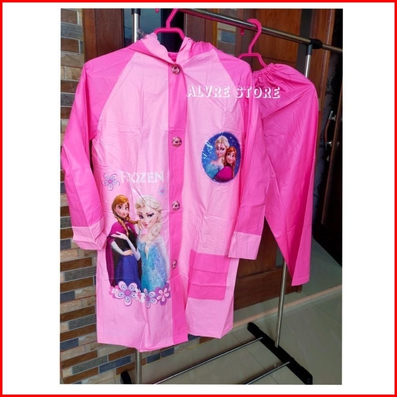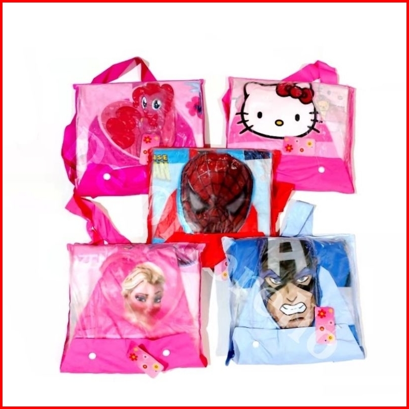 Jas Hujan Anak Setelan Karakter Jaket Dan Celana Backpack Spiderman Frozen Hello Kitty