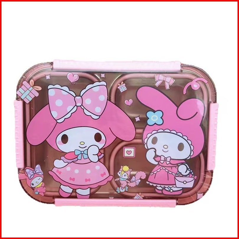 Koleksi Seribu .plume-kotak Bento Sanrio Kuromi Stitch Kotak Makan Sanrio 4 Sekat Sus 304 Anti Campur Bpa Free Berkualit