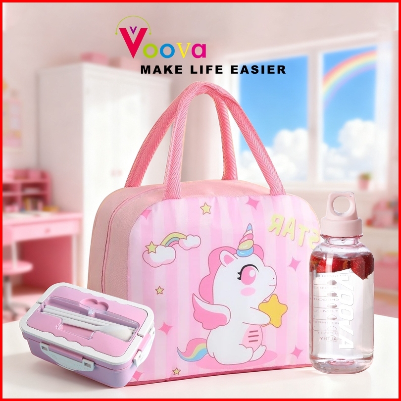 Voova Paket Bundling Ceria Set Alat Bekal Sekolah Dan Kantor Kotak Makan Tas Bekal Botol Minum