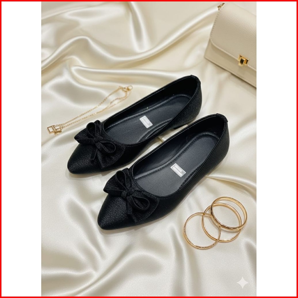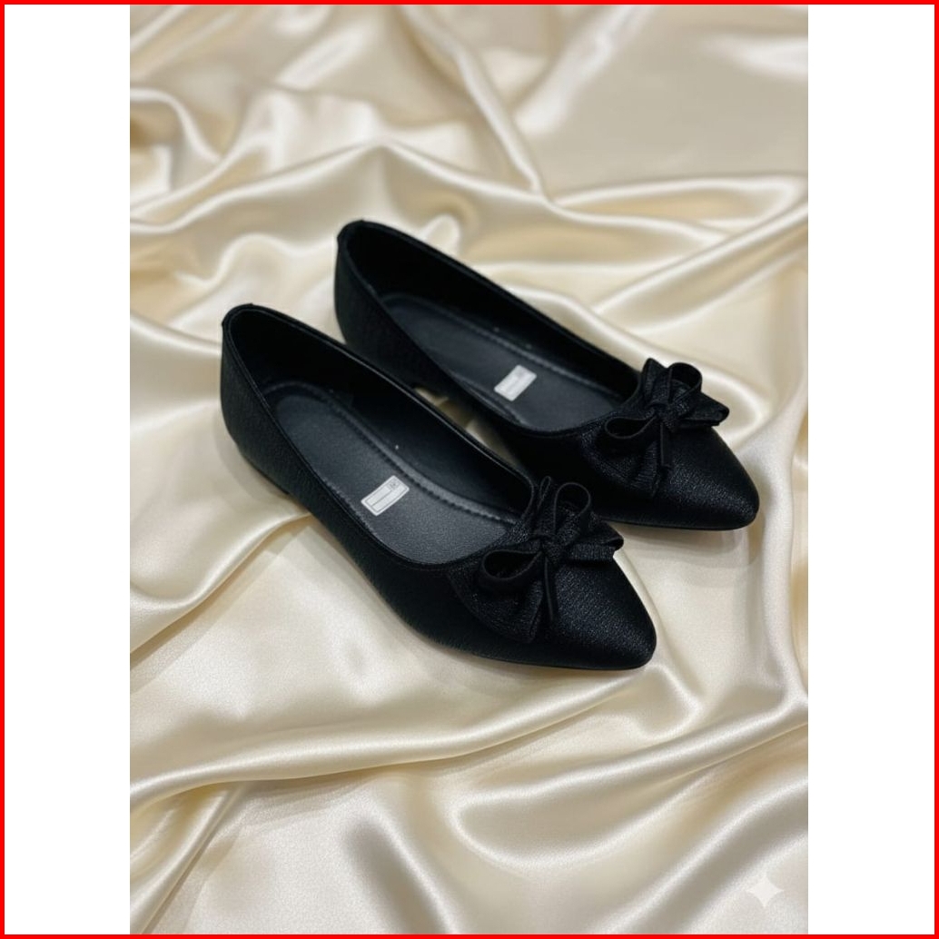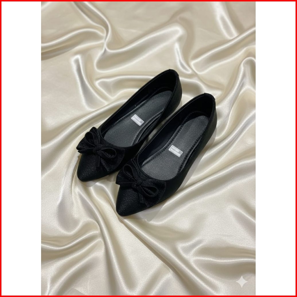 S01 - Flatshoes Wanita Model Pita Hitam Elegan