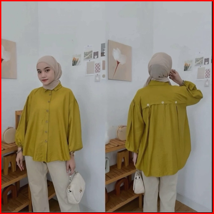 Atasan Kemeja Kerja Oversize Pololinen Lengan Panjang