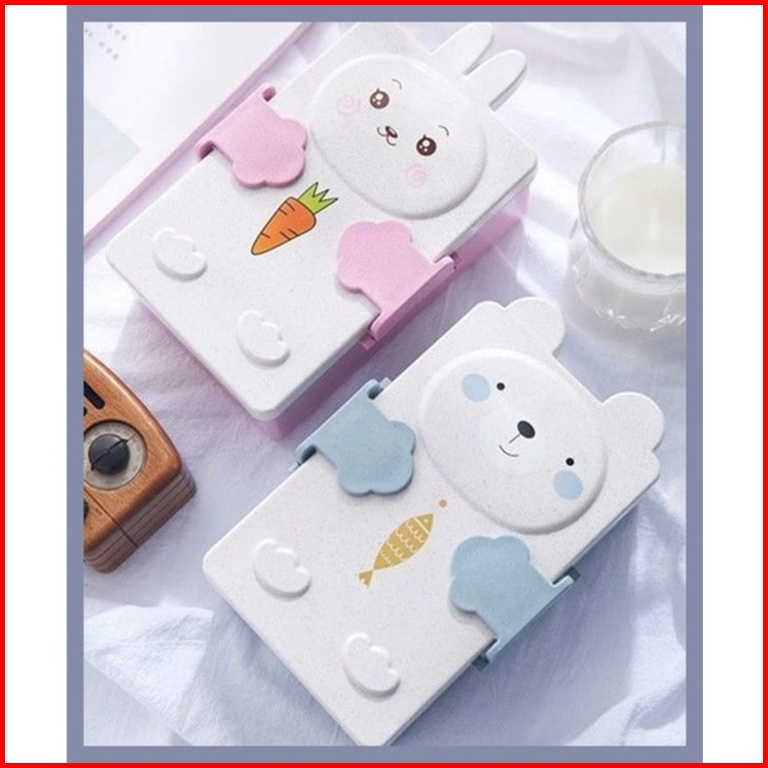 Kotak Bekal Makan Anak Tempat Makan Anak 2 Sekat Lunch Box Imut Bear Rabbit Motif Kelinci Beruang Chocho 88 Shop