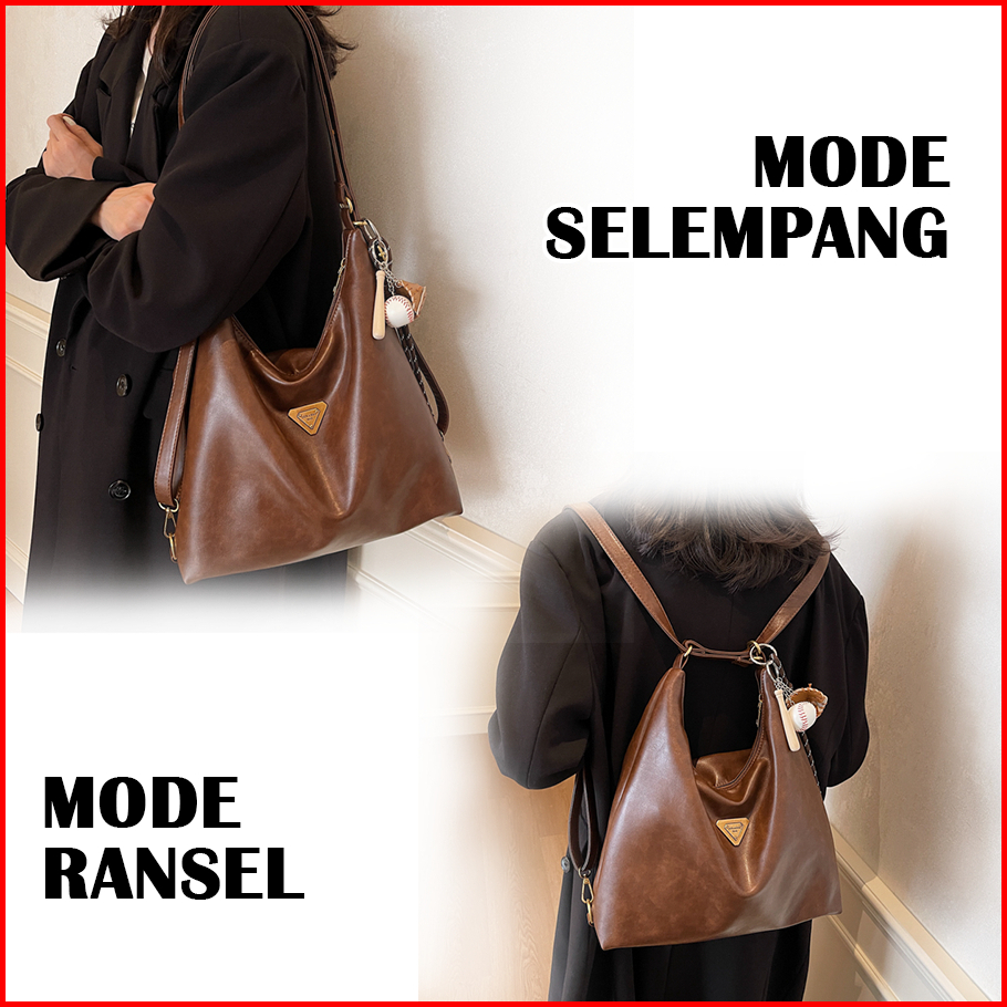 Tas Selempang Wanita Motif Polos Backpack Fashion 2 In 1 Multifungsi New Collection - Wy 1