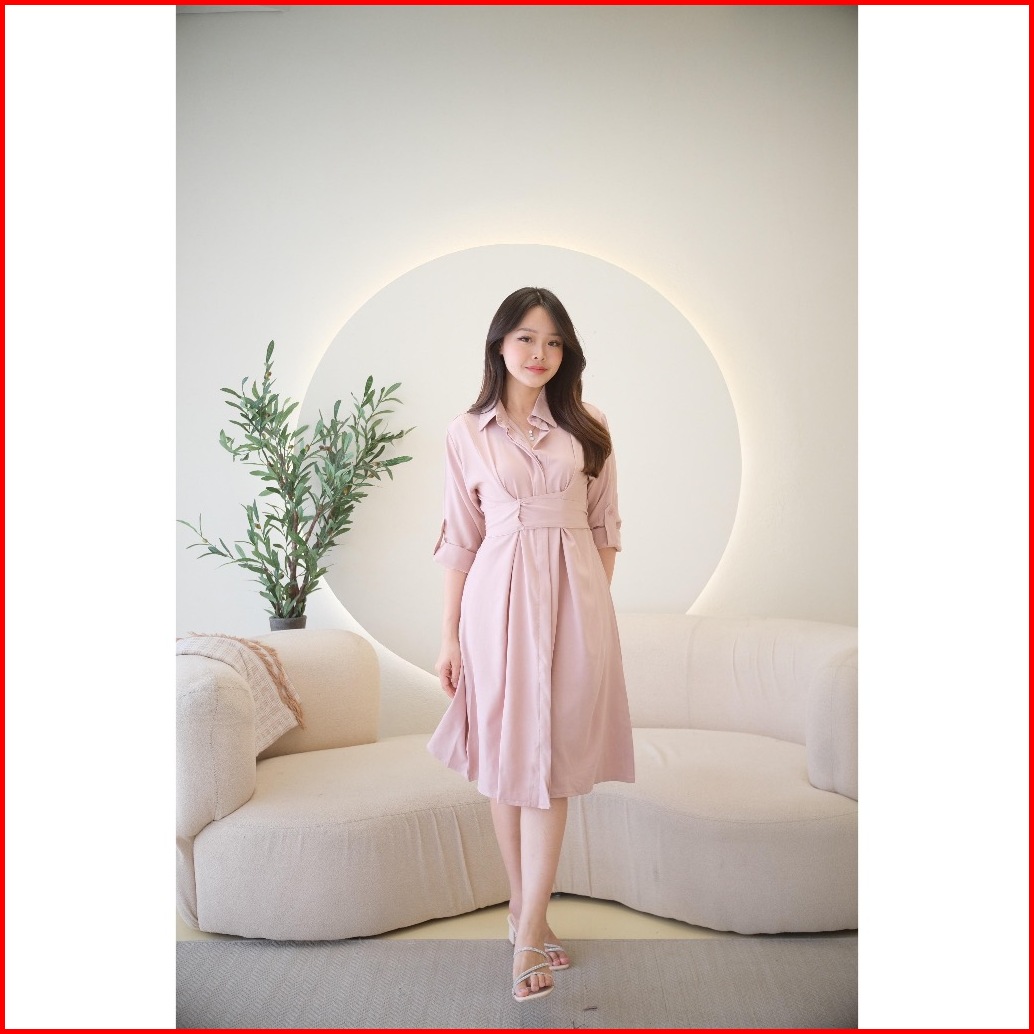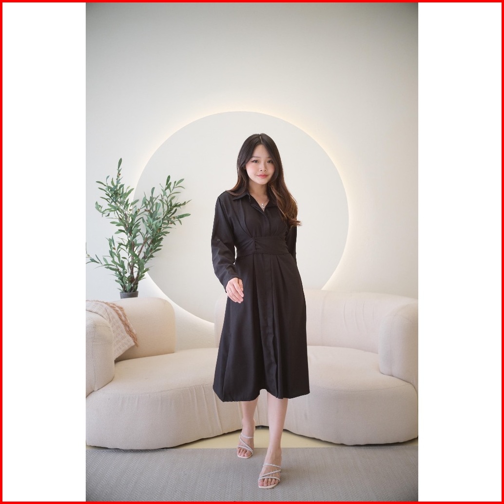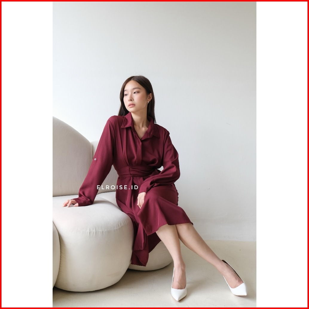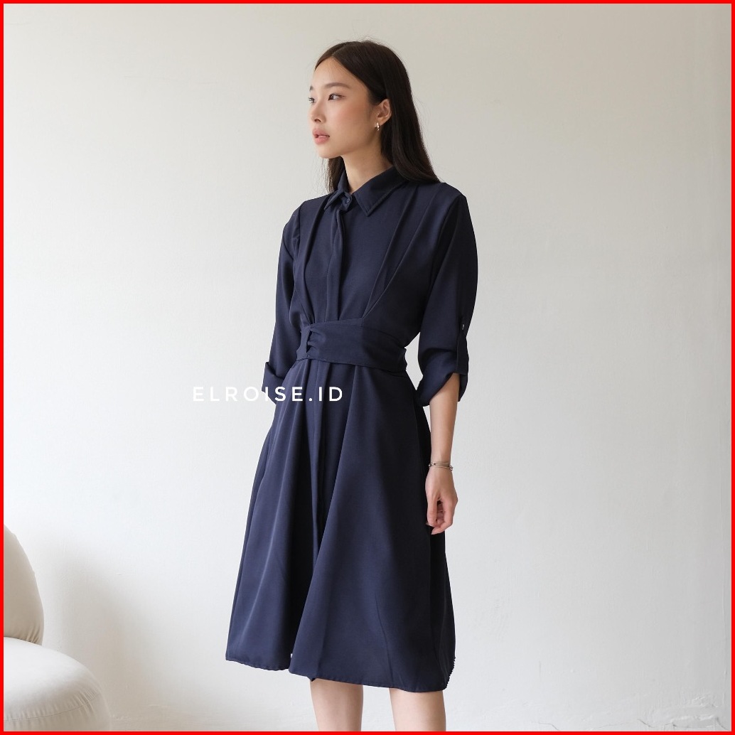 Elena Midi Dress Casual Dress Wanita Pinggang Adjustable Tunik