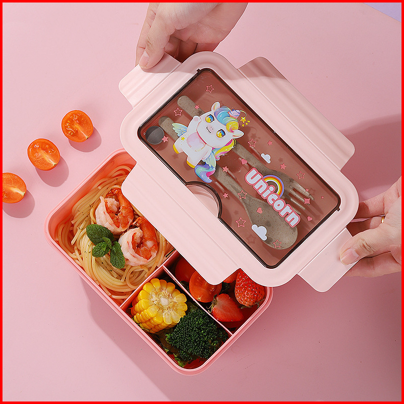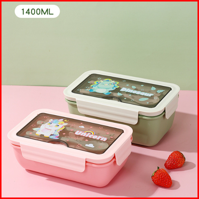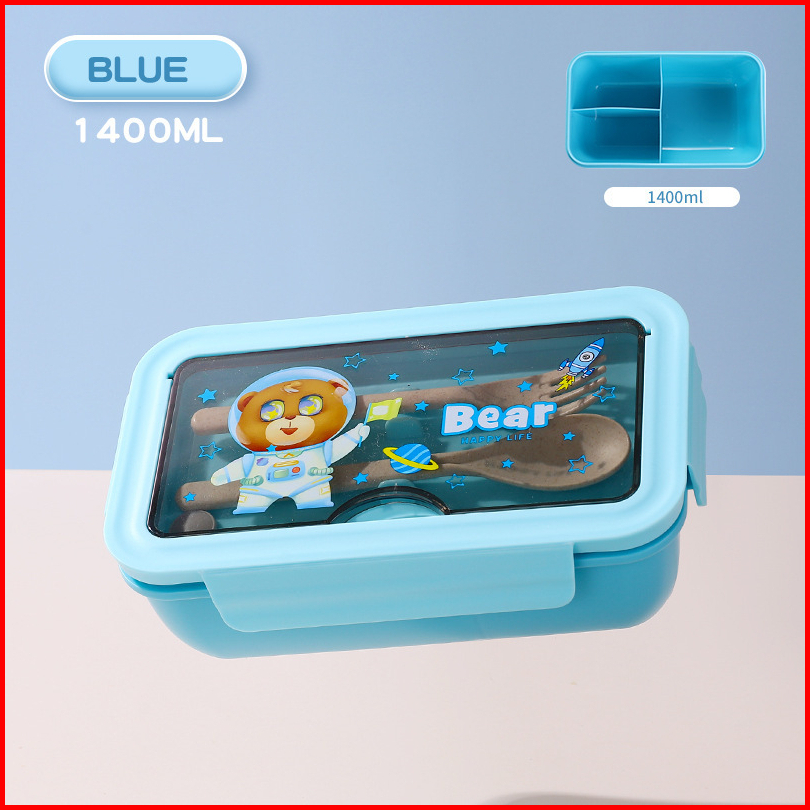 New Lunch Box Kotak Bekal 3 Sekat Karakter Lucu Kapasitas 1400ml Free Sendok Garpu 51712