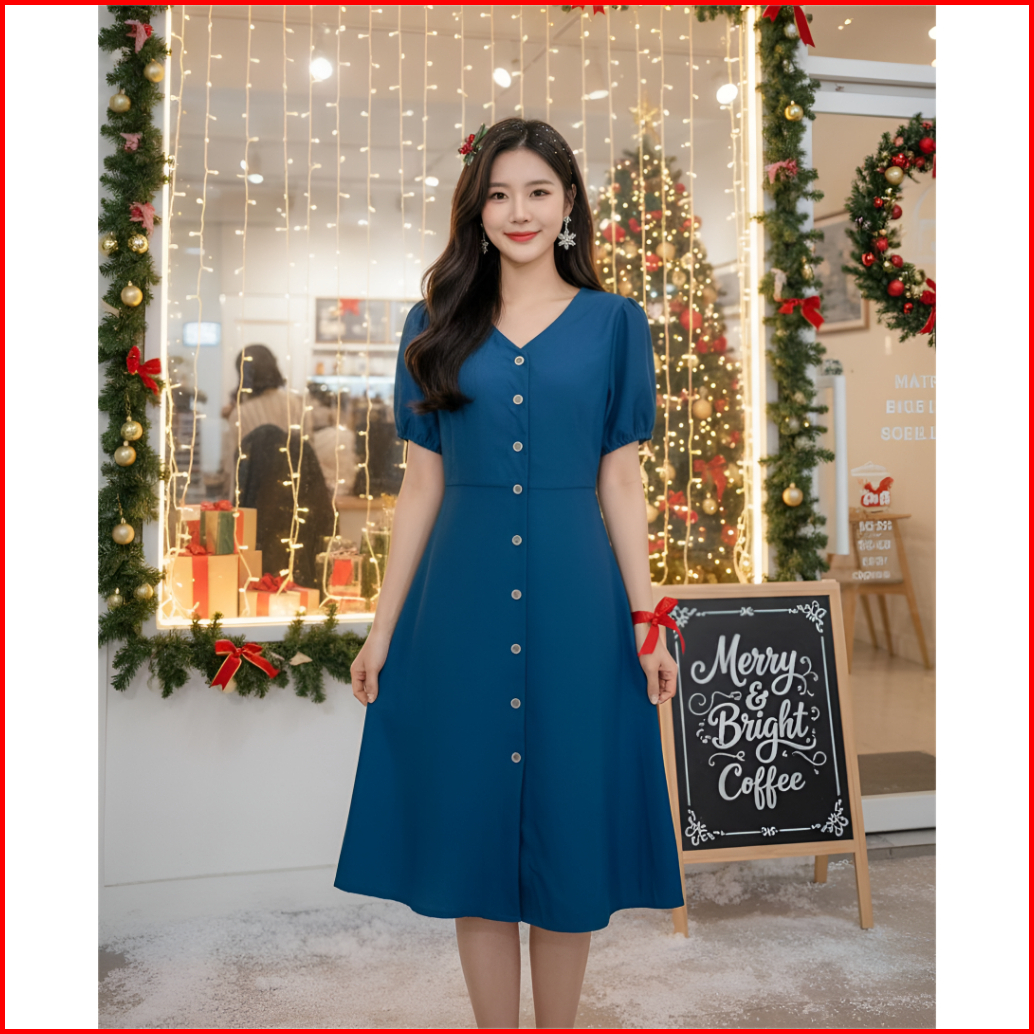 Cotton Bells Renata Dress Christmas Collection Gaun Casual Korea Premium Midi Natal Lengan Pendek Wanita Fashion Cv - Dr