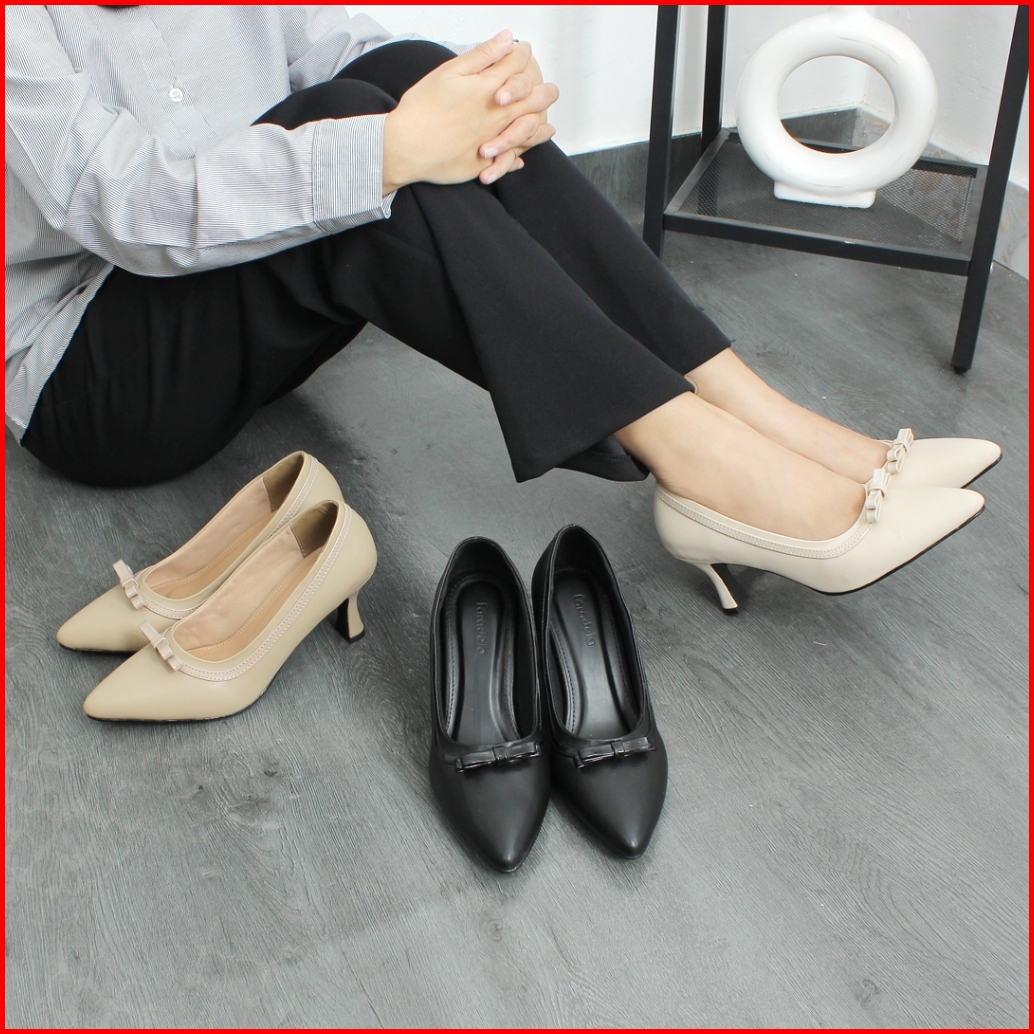 Faradela Leviola Sepatu Pantofel Wanita Heels Hak Tinggi 7 Cm Hitam Kerja Kantor 7f01-02