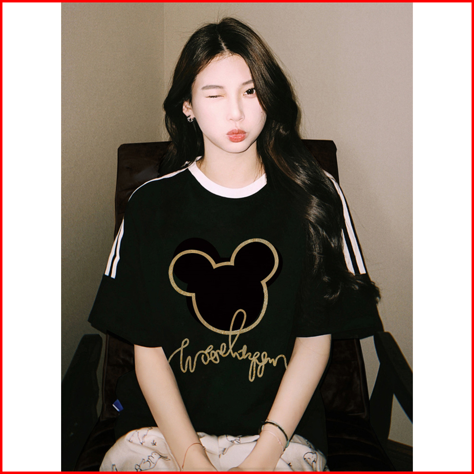 Sezo Baju Wanita Putih Black Kaos Premium Lengan Pendek Oversize Kaos Bergambar Mickey Mouse Atasan Wanita Kekinian Kore