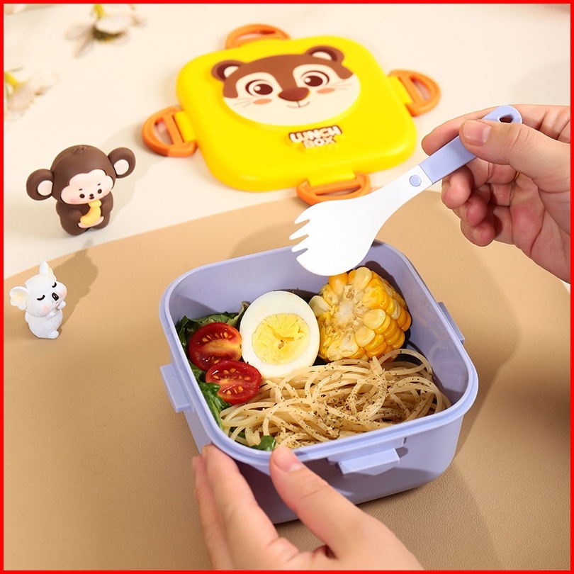 Lunch Box Anak Karakter Animal Kotak Makan 800ml Free Alat Makan Bpa Free - Hx 55902