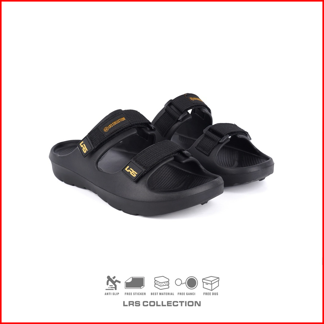 Lrs Collection- Sandal Pria Arnoud Black Yellow Sandal Casual Slop