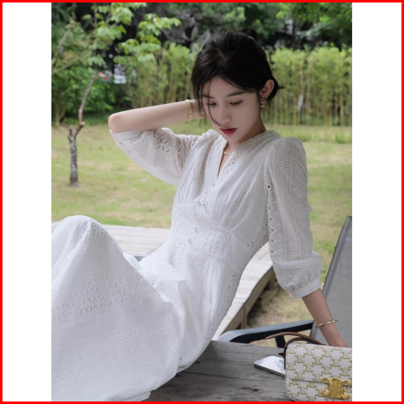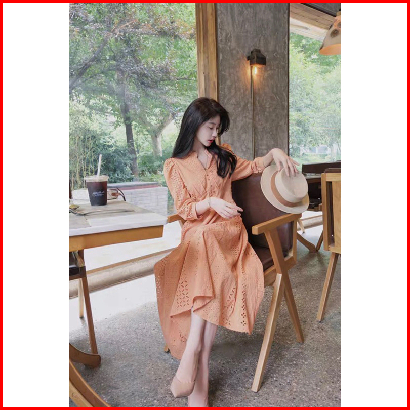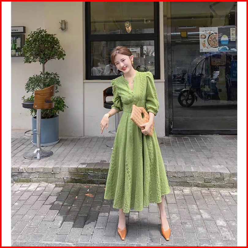 Ada Size Jumbo D1442 Becky Korean Style Eyelet Vintage Midi Dress Natal Sopan Simple Polos Katbol