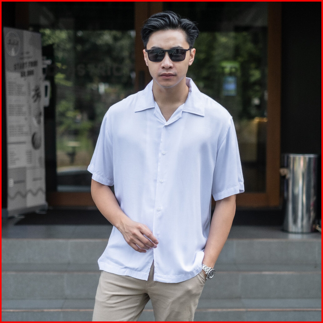 Baju Kemeja Pria Rayon Polos Lengan Pendek Katun Kain Nyaman Lembut Halus Vintage Hem Terbaru