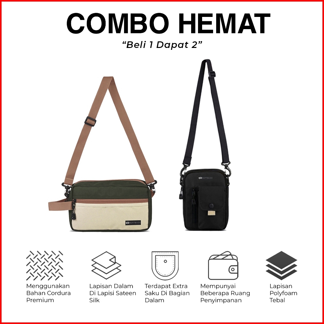Buffback - Combo Hemat Exclusive Beli 1 Dapat 2 Tas Selempang Slingbag Leiva - Nerly
