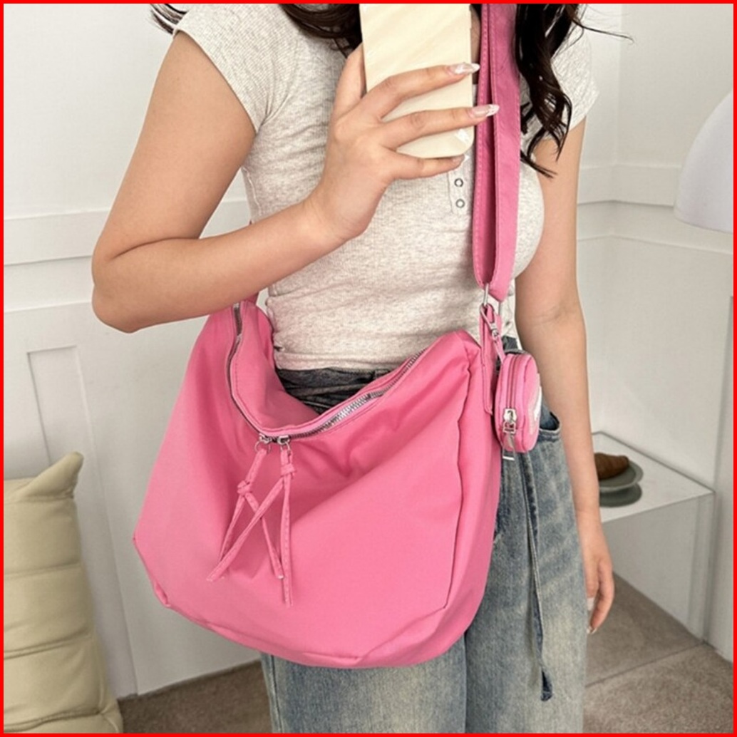 Tas Selempang Bahu Wanita Nilon Polos Trendy Double Resleting Fashion Import - Ls 9446