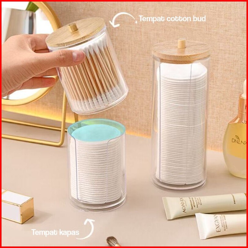 Dejavu Tempat Penyimpanan Kapas Kotak Organizer Transparan Anti Debu Meja Rias Hsb704