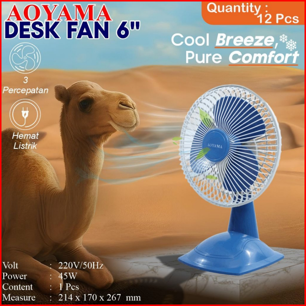 Aoyama Kipas Angin Meja Desk Fan 6 8 10 12 Inch Angin Kencang Hemat Listrik Suara Halus