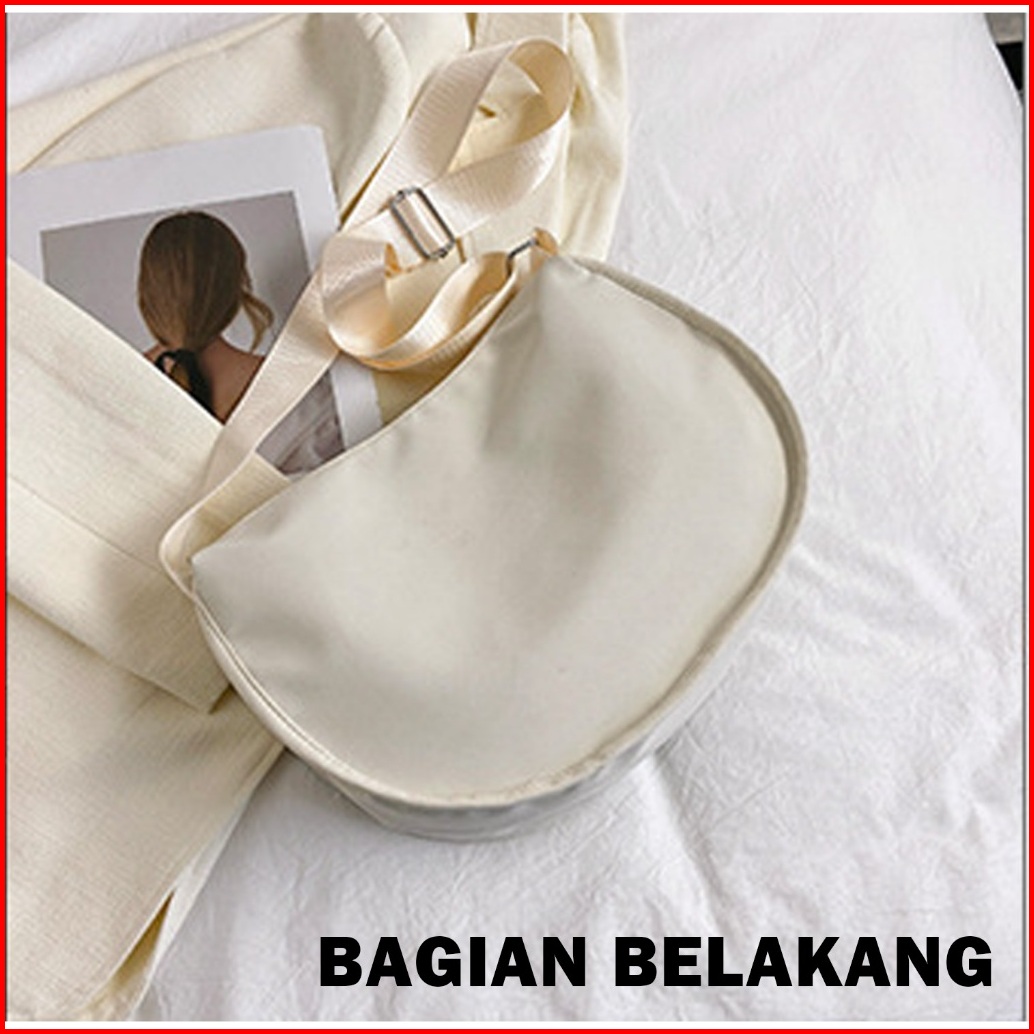Tas Selempang Wanita Polos Shoulderbag Classic Large Canvas Trendy Korean Style - Ls 9243