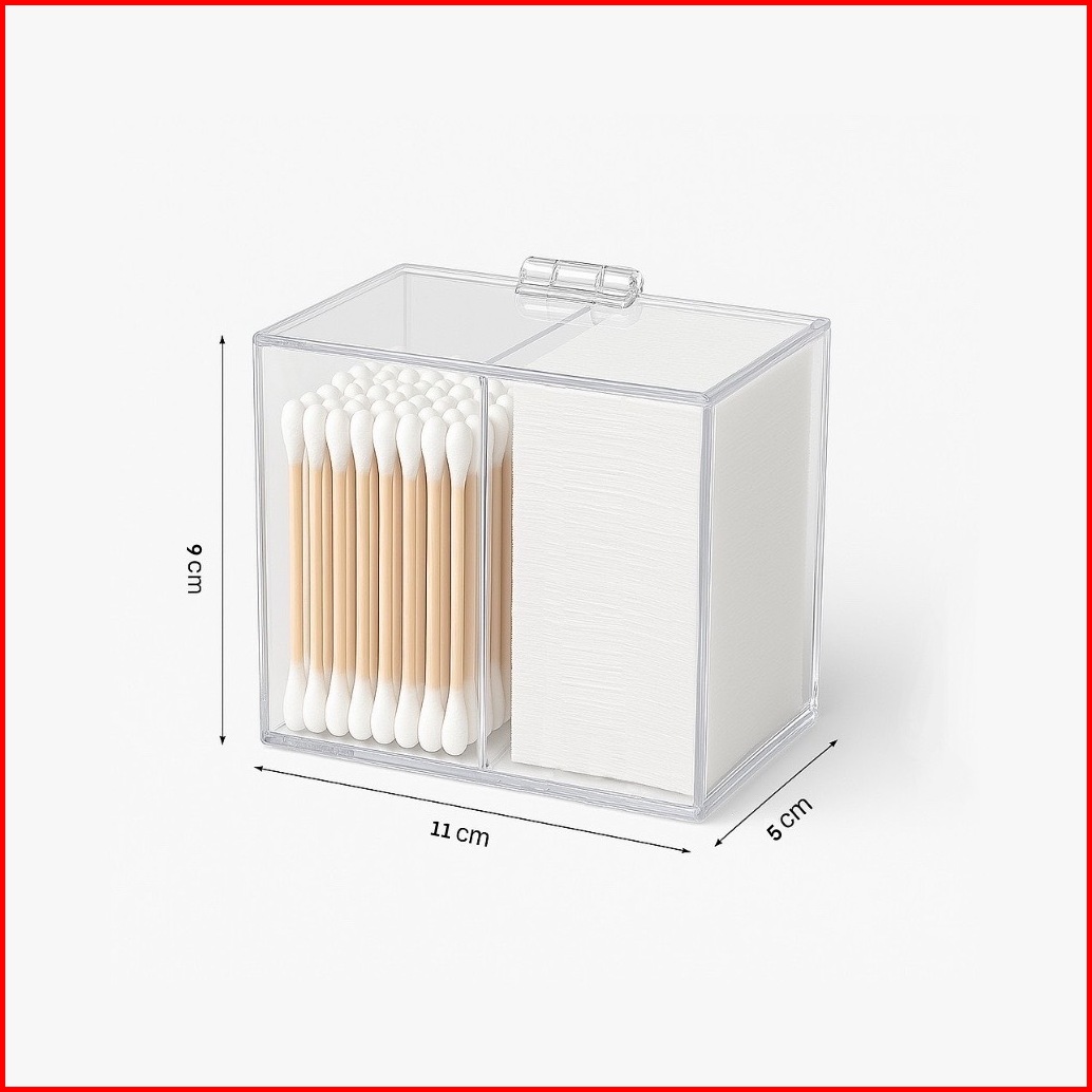 Tempat Kotak Kapas Wajah Akrilik Wadah Box Cotton Bud Organizer Estetik