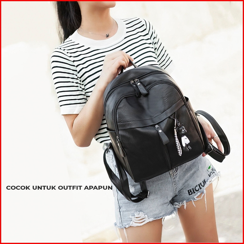 Tas Ransel Wanita Polos Hitam Back Pack Trendy Simpel Casual Fashion Modis - Ns 7