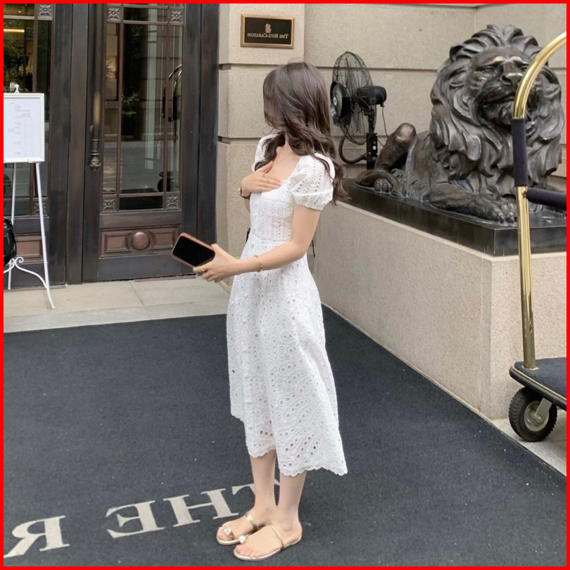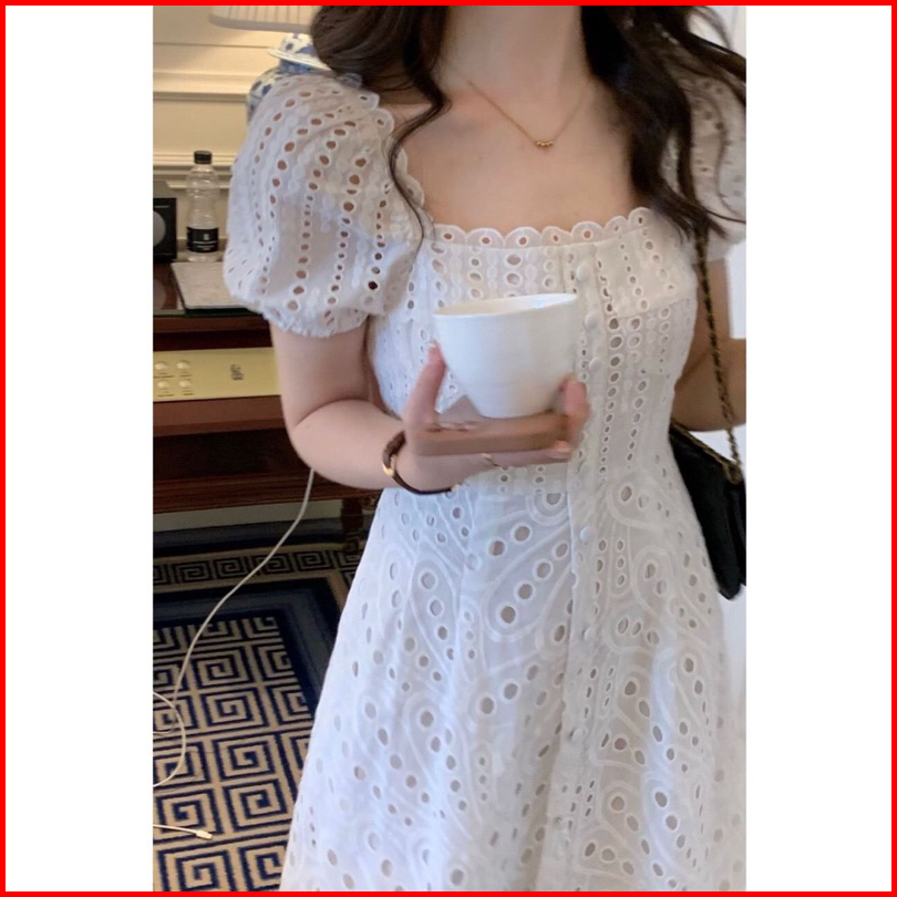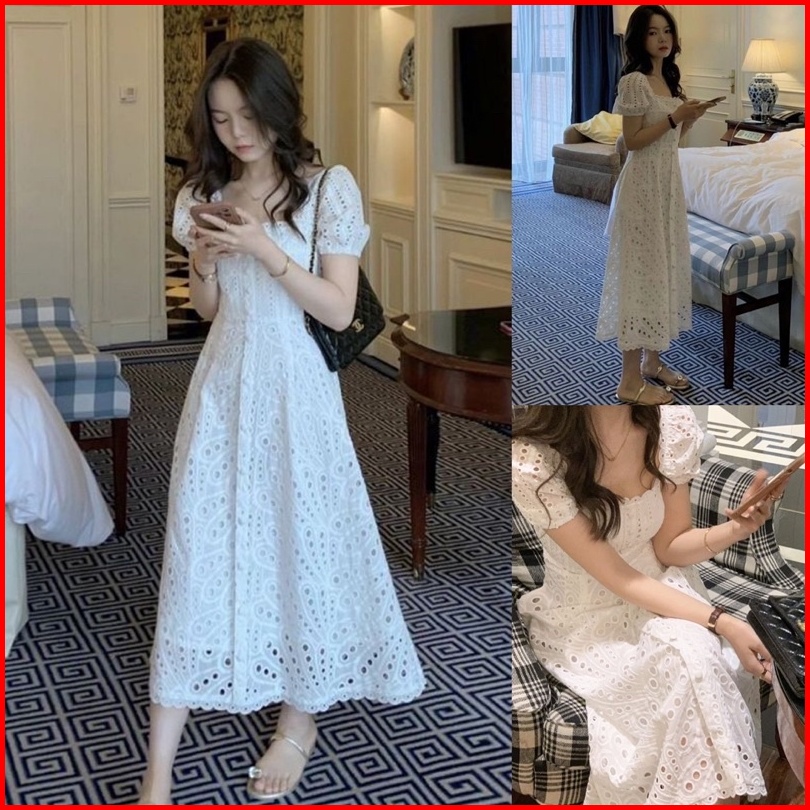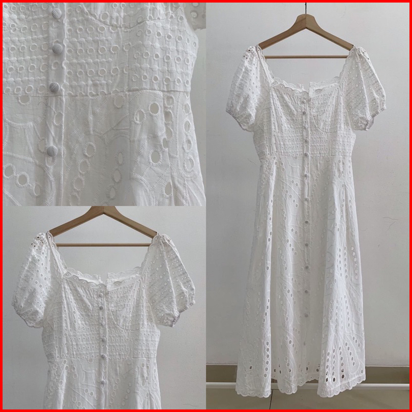 Ada Size Jumbo D1101 Jessica Korean Style Eyelet Vintage Midi Dress Putih Polos Katbol Katun Bolong Summer