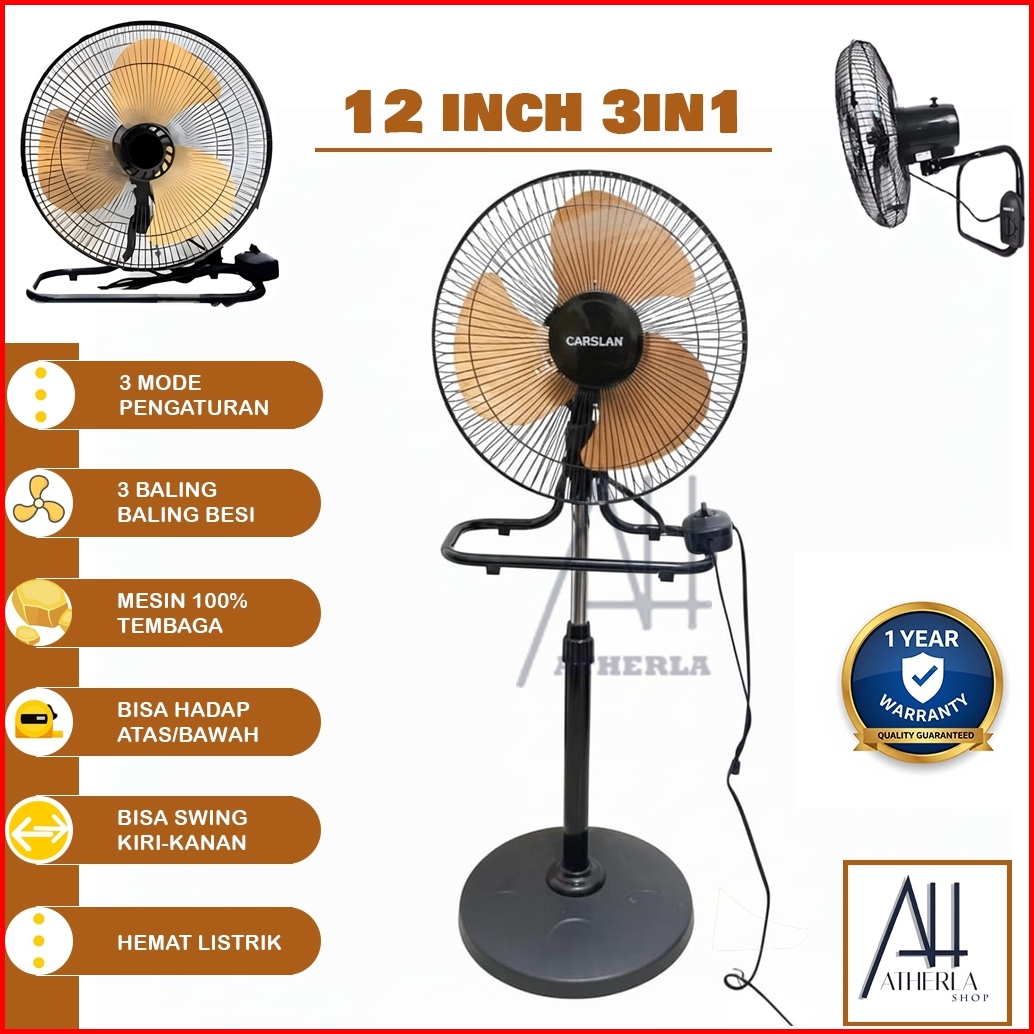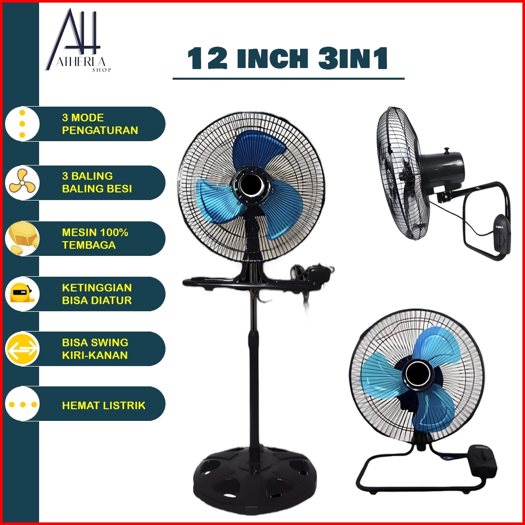 Kipas Angin Besi Tornado Fan 12 Inch 3in1 Wall Fan Hemat Daya Kencang 12