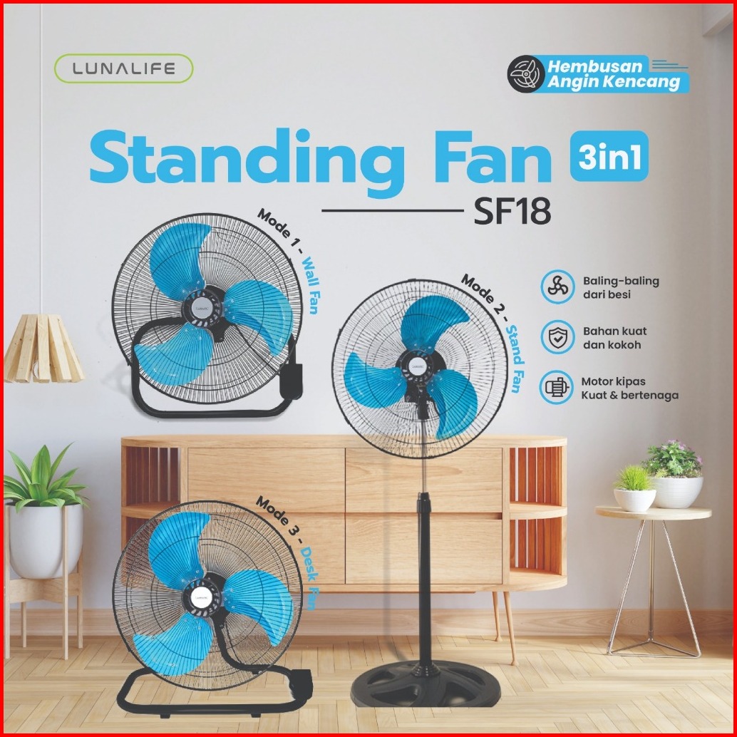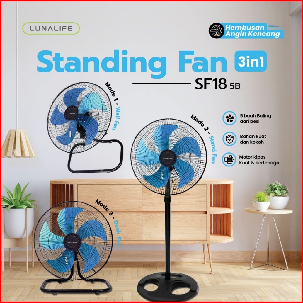 Lunalife Kipas Angin 18 Inch 3 5 Daun Baling 3in1 Stand Desk Wall Sni Garansi Resmi 1 Tahun