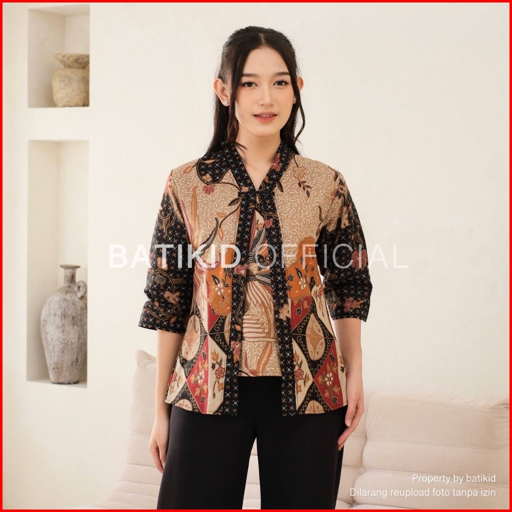 Batikid Atasan Batik Wanita Bahan Katun Ayam Hitam Blouse Bolero Kekinian Resleting Belakang