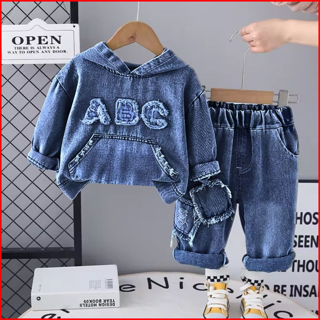Setelan Anak Jeans Hoodie Dan Celana Denim 1-5 Tahun - Outfit Kasual Trendy