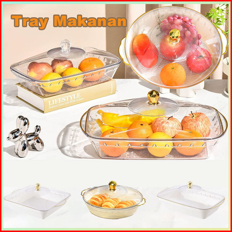 Aesthetic Dengan Tutup Wadah Buah Tempat Roti Wadah Saji Tray Makanan Nampan Saji Transparan