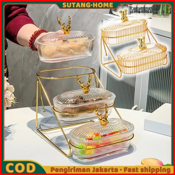 Sutang3 Tingkat Tempat Buah Rangka Besi Baki Dengan Tutup Rusa Toples Tempat Buah Snack Kopi Makanan Ringan Wadah Kotak