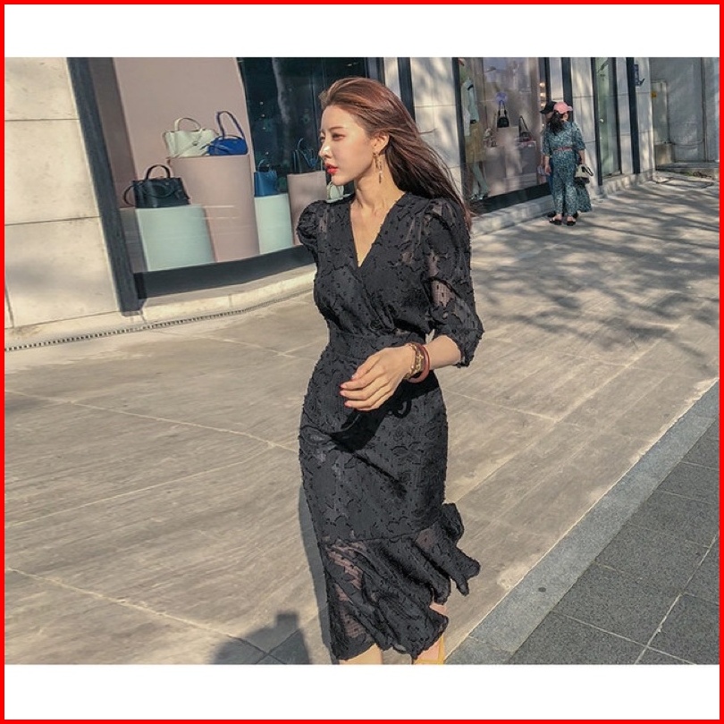 D0599 Ariel Korean Style Mermaid Vintage Midi Dress Pesta Kondangan Simple Duyung Vneck