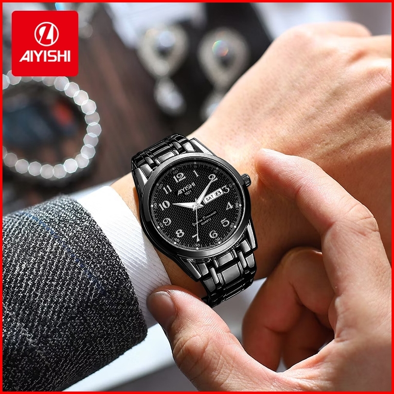 Aiyishi Jam Tangan Pria Anti Air Original Stainless Steel Chrono Aktif Cowok Luminous Kalender Analog Men Watch Mode 285
