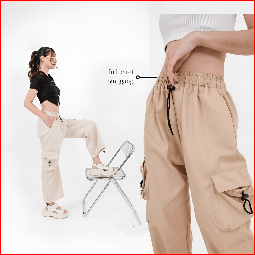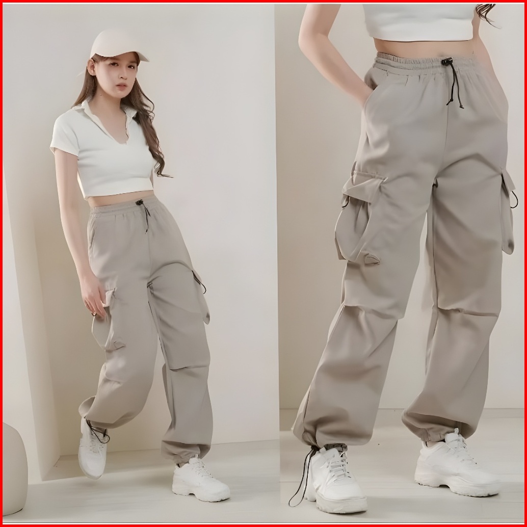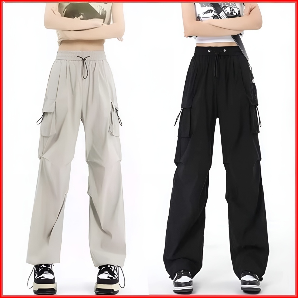 Cargo Pants Wanita Highwaist Loose Pants Korean Style Jumbo - Celana Cargo Wanita Terbaru