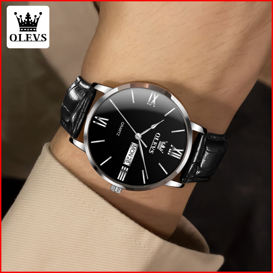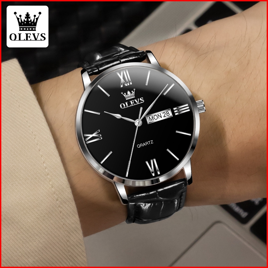 Olevs Jam Tangan Pria Mewah Original 100 Anti Air Kuarsa Bisnis Men Watches Tali Kulit Analog Jam Tangan Cowok Kaledner