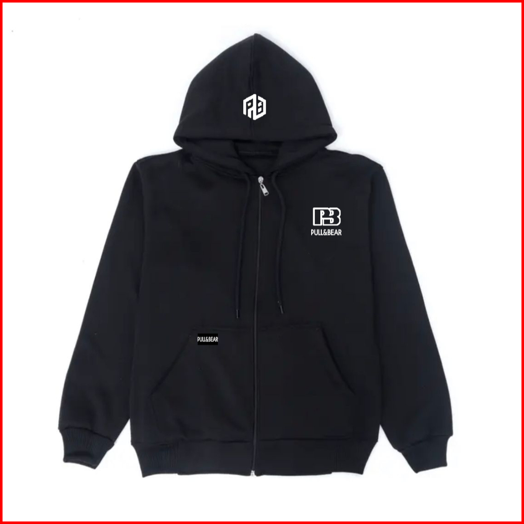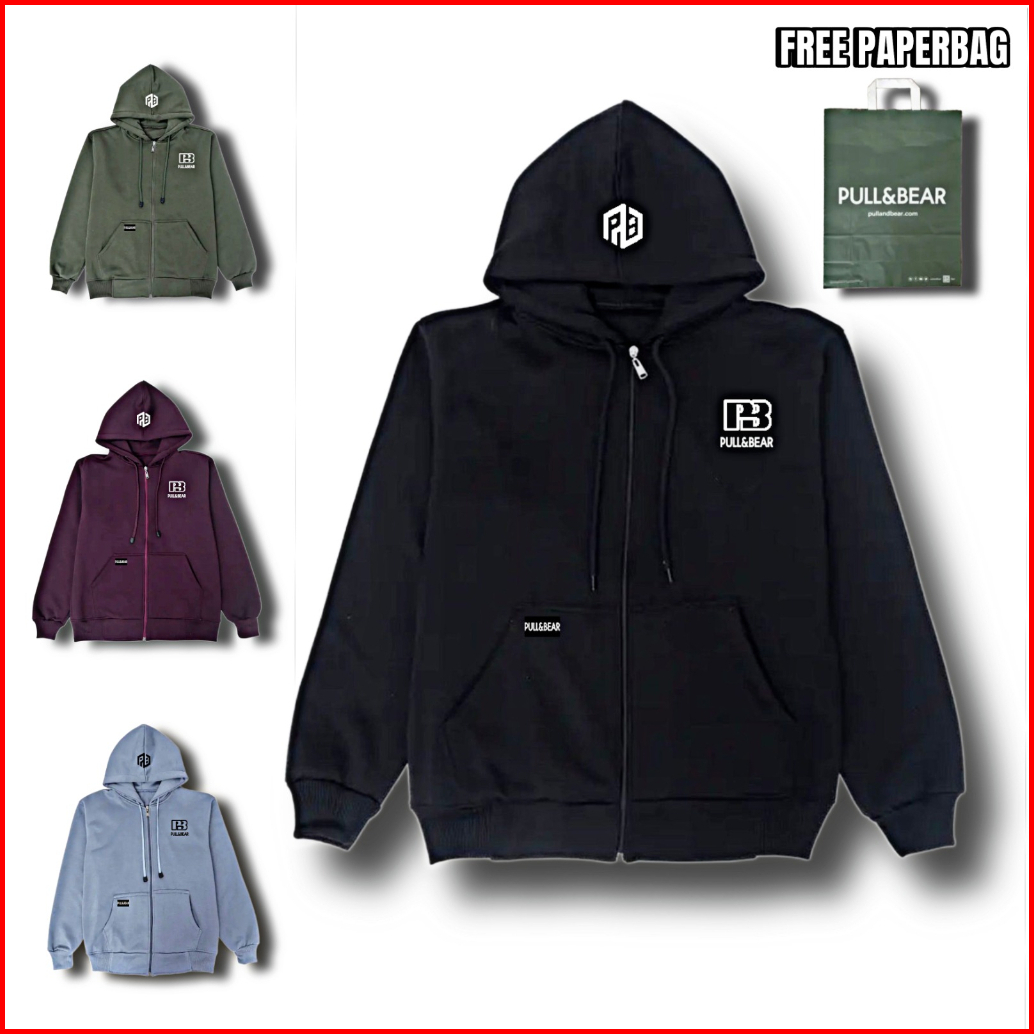 Free Paper Bag Hoodie Zipper Pull And Bear Ful Bordir Basic Pria - Wanita Oversize Premium Quality