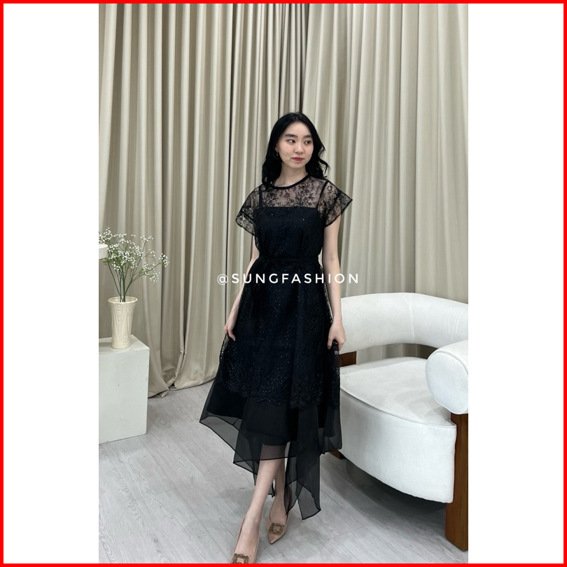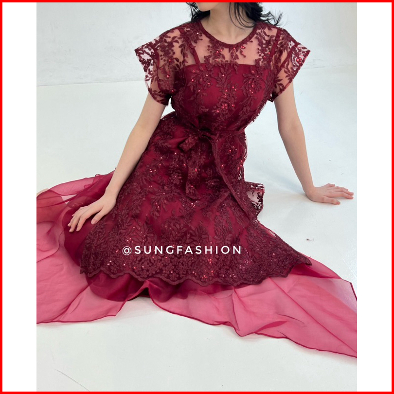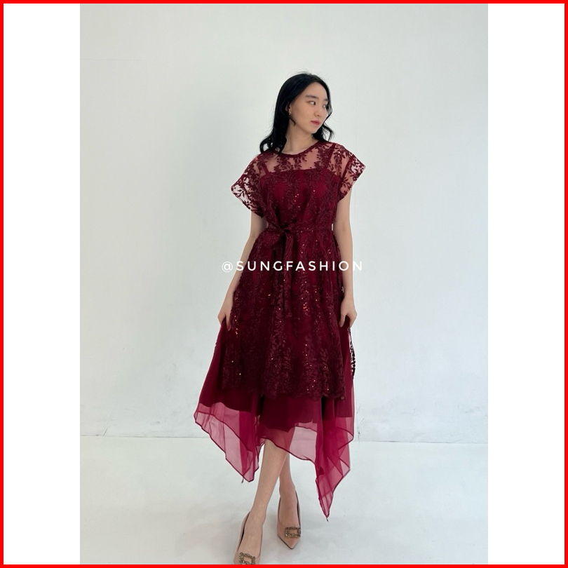 S351 Dress Wanita Kondangan Bridesmaid Pesta Mewah Bahan Premium