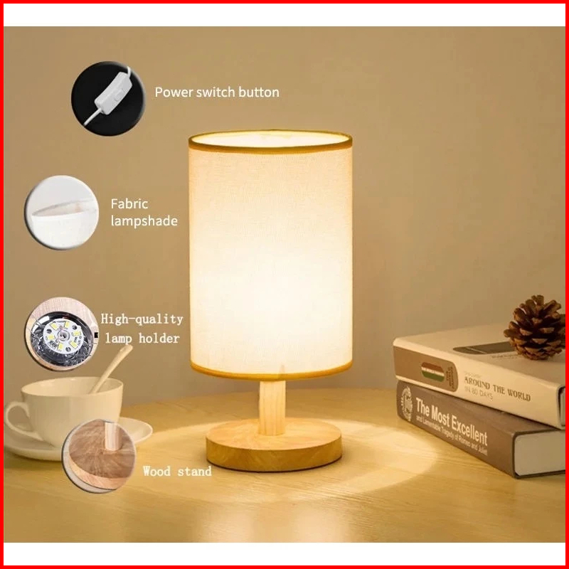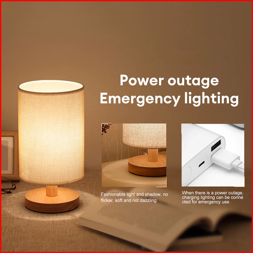 Harga Minimumcod Lampu Meja Usb Kain Kayu Solid Hiasi Lampu Samping Tempat Tidur Kamar Tidur Lampu Malam Led Yang Dikend