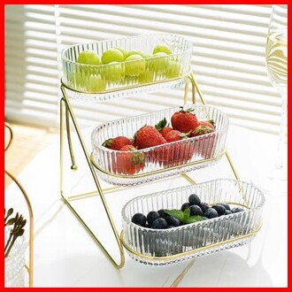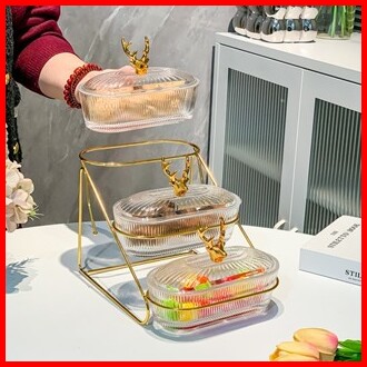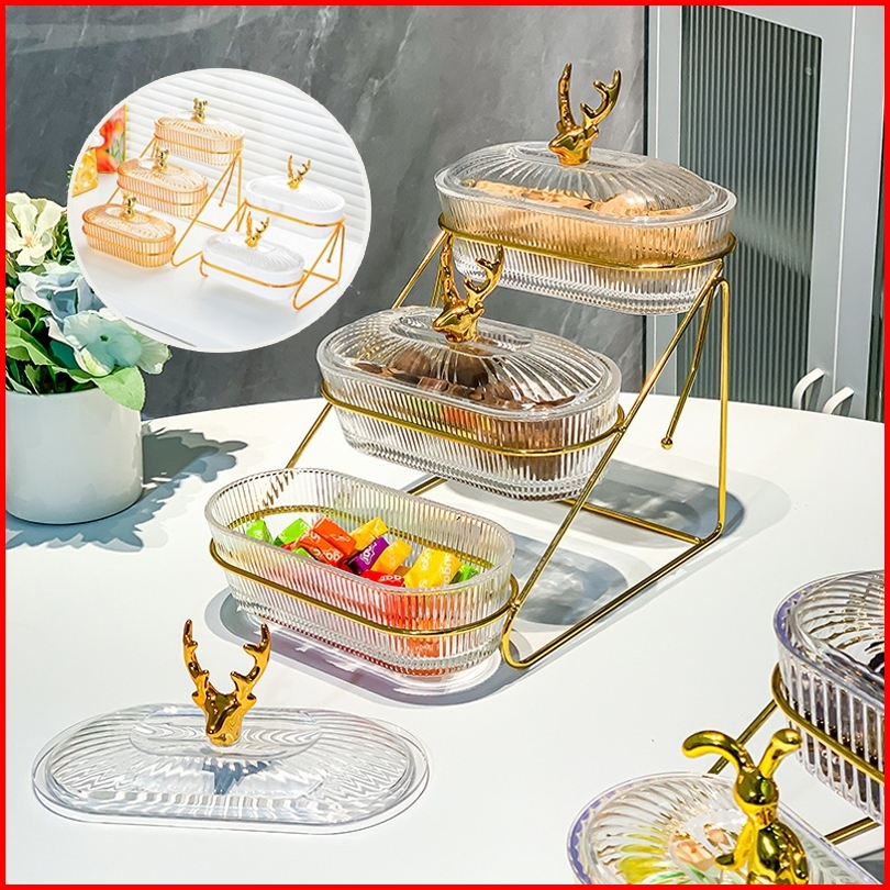 Morebi - 3 Tingkat Toples Tempat Buah Snack Makanan Ringan Wadah Buah Dengan Tatakan Rak Buah Rusa Dengan