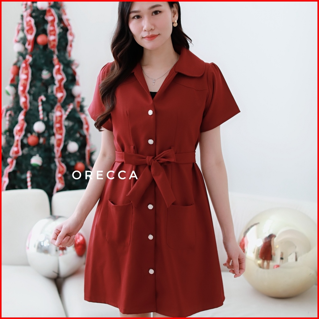 Orecca - Clarissa Dress Midi Wanita Lengan Pendek Natal