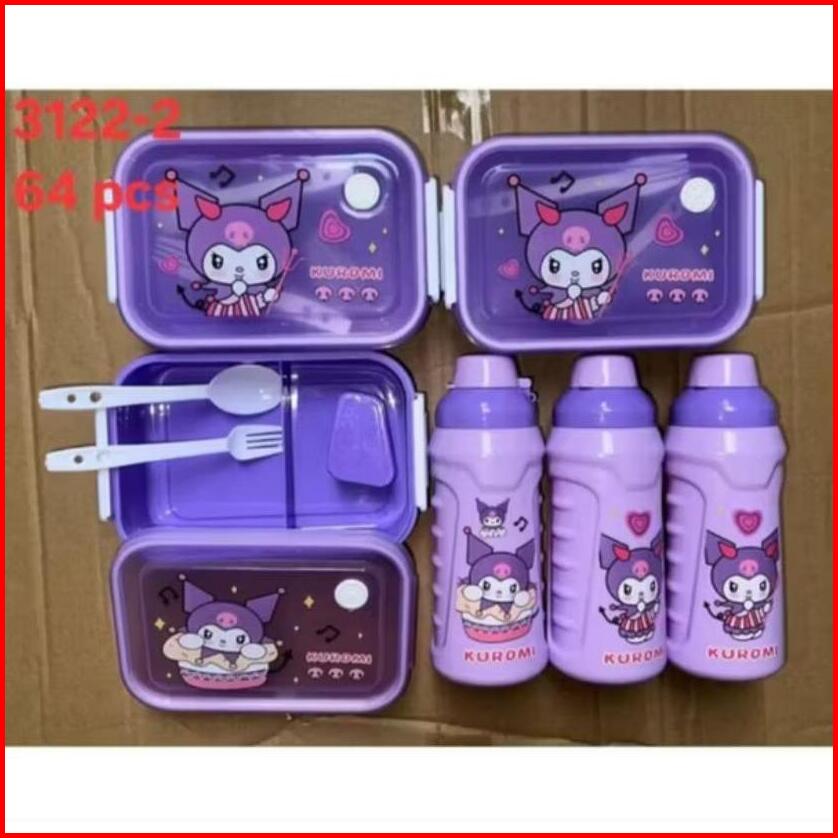 Kotak Makan Set Botol Minum Set Tempat Makan Anak Krakter Set 3124-2