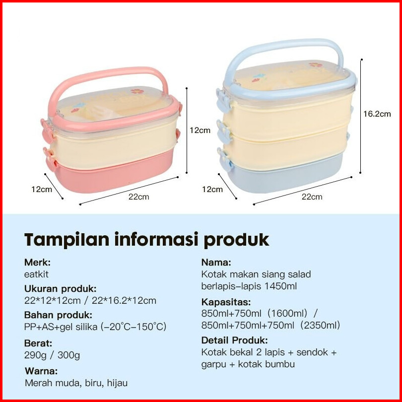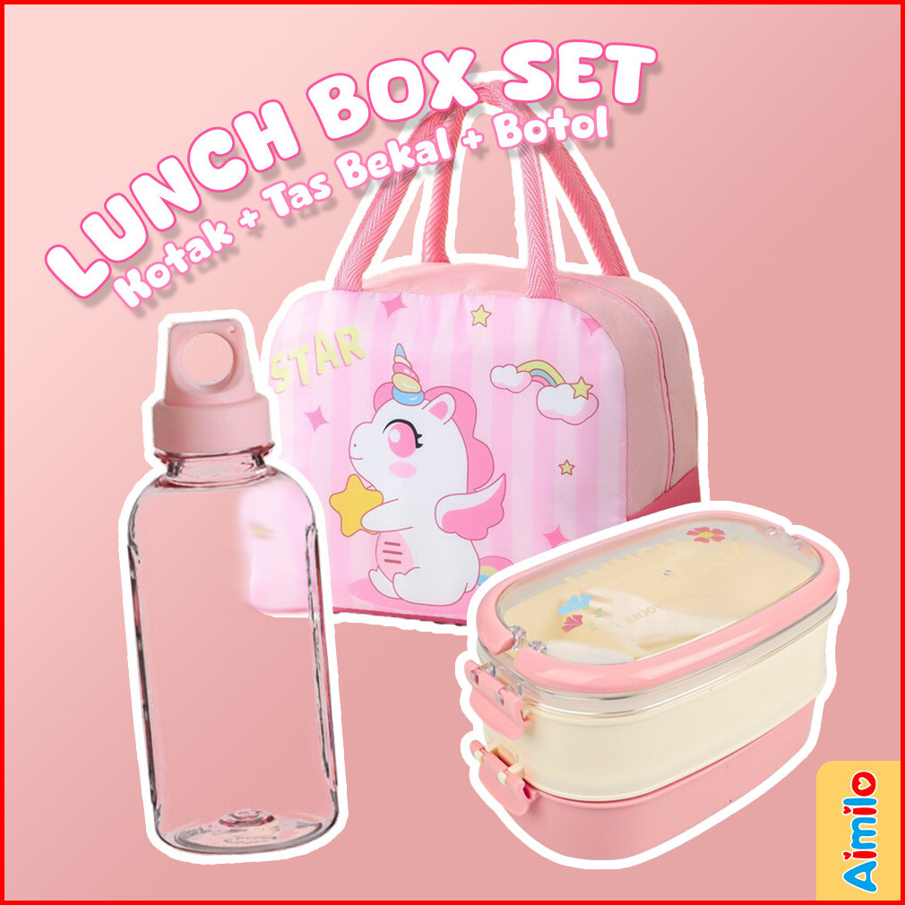 Lunch Box Set Tas Bekal Anak Anti Tumpah 1600ml Kotak Bekal Lucu Aesthetic Kapasitas Besar